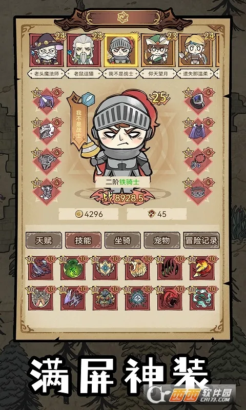 2、特色养成系统:能合理利用小镇设施,如酒馆、铁匠铺、药剂店、图书馆和许愿池等,为勇者提供生活资源与养成途径,还可通过冒险全方位提升勇者,包括技能、坐骑、宠物、装备等。
