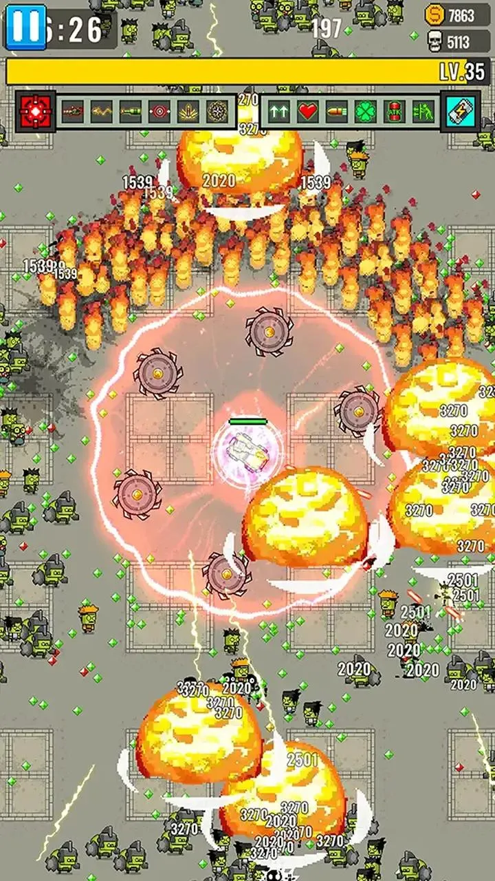 玩法上,控制战车割草生存,击败僵尸升级战车获随机新能力,相同能力可组合升级,击败精英BOSS有丰厚奖励,不断解锁更多内容,享受愉快游戏过程。总之,这是一款玩法丰富、体验刺激的末日游戏佳作。