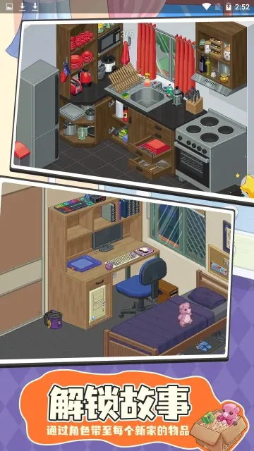 玩法上,玩家能规划和装饰各种房间,从寝室到整栋房子。通过不断开箱获得丰富物品,用于装饰新家,还能装扮角色。游戏没有高分竞技和战斗力比拼,非常休闲,还有舒缓的背景音乐,让人在收纳整理时享受惬意时光。