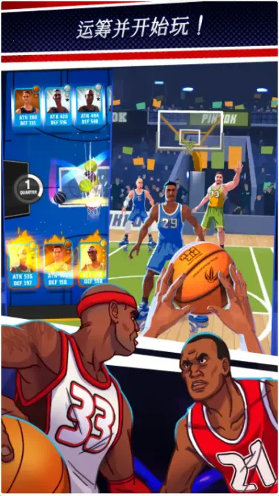游戏拥有数百张动态 3D 球员卡牌,收集并升级可强化队伍。比赛模式中,双方各上场五名球员,角色有攻防基础数值,稀有球员还有独特被动技能。单纯靠数值不够,要合理搭配阵容应对不同赛况。对手交锋环节出现在特定节次,分攻防类型,进攻需选队员对比。实战操作要在三秒内滑动屏幕完成投篮等动作。