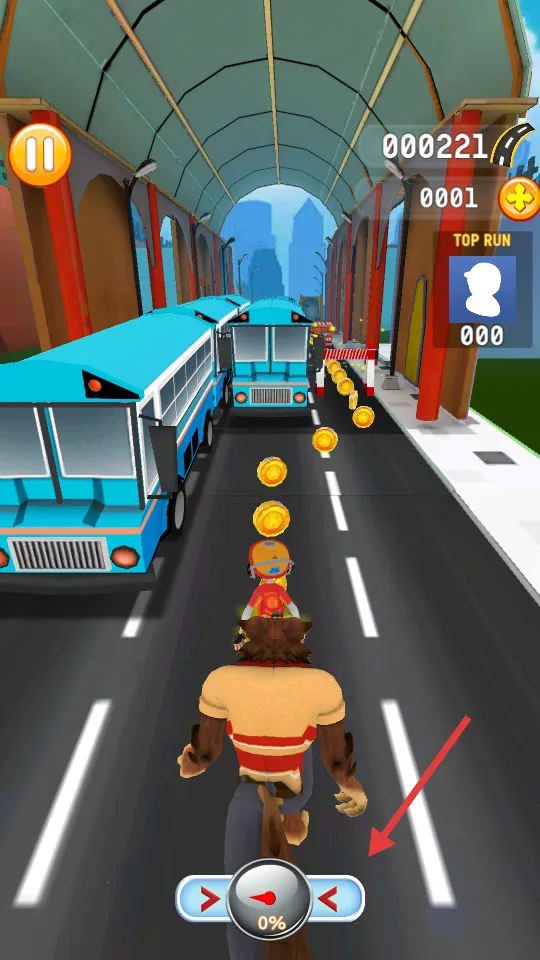 2、躲避沿途的公交车和各种障碍物并收集硬币。