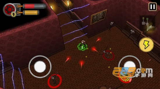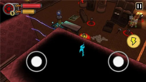 玩法丰富。能升级角色、换武器、买道具。战斗时,左右轮盘控制方向与攻击,点击闪电释放技能。进入战斗场景先找技能点提升战斗力。