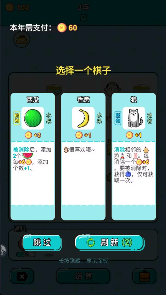 游戏玩法新颖独特,采用棋子规则,随机事件频出,充满变数。卡牌丰富多样,如茶杯能加金币,肥宅可在特定情况获高额金币等。