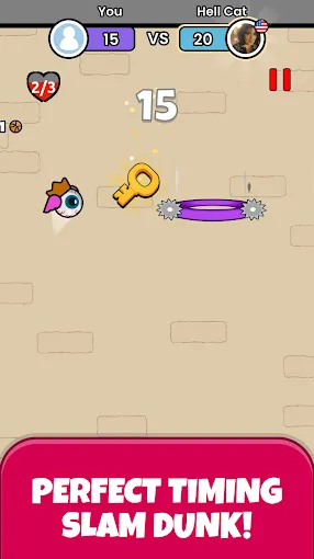 想体验超刺激的篮球扣篮乐趣吗?这款以篮球为主题的休闲小游戏绝对能满足你!它叫飞天扣篮FlappyDunk,由知名厂商VOODOO自主研发。玩法超简单,单指点击就能让篮球飞跃,顺利进入篮筐得分。要是能完美穿过,还能获多倍分数加成,挑战更高奖励。不断挑战还能解锁各种酷炫篮球皮肤,让挑战更有趣。开始挑战会随机匹配对手对战,点击让篮球穿越篮筐,连续穿过有炫酷特效。掉到地上或没穿过去就结束挑战结算奖励,每次破纪录也有特效。解锁皮肤很容易,在皮肤界面看对应解锁方式,达成就能自动解锁,除了篮球皮肤,还能换帽子、翅膀、篮筐等。简单操作与挑战玩法结合,上手轻松却难精通,清爽画面搭配休闲音乐,让你畅快享受游戏乐趣!