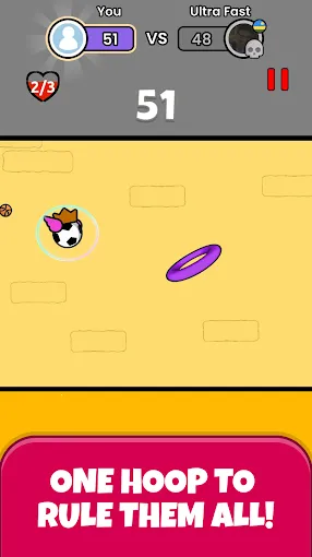 《飞天扣篮》是一款由VOODOO研发的篮球主题休闲小游戏。其玩法简单却充满挑战,通过单指点击让篮球飞跃,进入篮筐得分。若完美穿过,可获多倍分数加成。游戏开始后随机匹配对手对战,点击使篮球跳跃穿越篮筐,连续穿过有炫酷特效,掉到地上或未穿过则挑战结束并结算奖励,破纪录也有特效。解锁皮肤的方式在皮肤界面查看,达成条件即可自动解锁,除篮球皮肤外,还能更换帽子、翅膀、篮筐等。