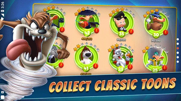 其特色鲜明。能收集众多卡通角色,如兔八哥、埃尔默福德等。是动作角色扮演与战略游戏结合,收集升级角色,用卡通噱头作特殊攻击,体验回合制战略战斗,运用团队建设技能创建最强团队。