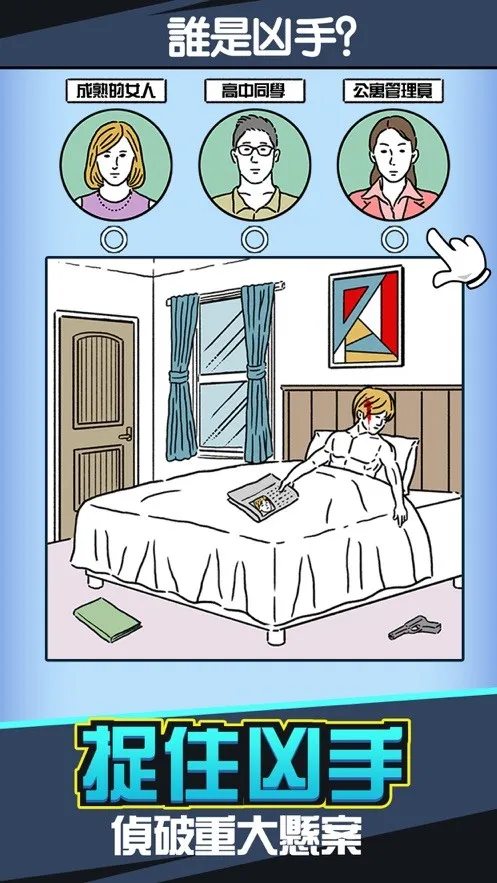 这款推理解谜游戏带来了沉浸式体验。其玩法围绕犯罪现场勘查展开,需细致观察手绘风格场景,点击收集物证与线索,分析线索关联还原真相,在嫌疑人中锁定真凶。