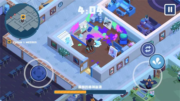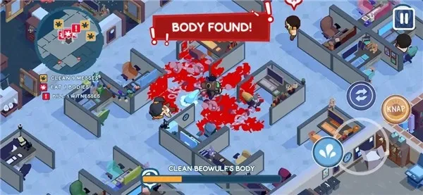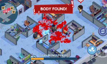 游戏玩法丰富。使用多种工具清洁,从基础的水管、拖把,随着关卡推进解锁更多,应对复杂场景。隐藏身份是关键,被同事看到狼人面目,要及时攻击清理,否则任务失败。速度决定评分,限时内完成任务才能获得高分。