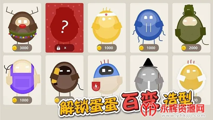 4、提供蛋蛋能力培养和皮肤解锁系统,玩家可以通过收集金币提升蛋蛋能力,解锁各种风格的皮肤,满足玩家的个性化需求和收集欲望,提升游戏的耐玩性。