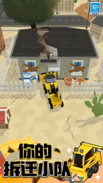 3. 丰富载具:除基础推土机外,可解锁并升级各种不同的拆迁载具,每辆载具都有独特特点,增加拆迁乐趣和效率。