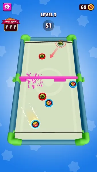 它的画面设计十分精彩,能给予玩家不一样的乐趣。在玩法上,将手机屏幕一分为二进行双人对战,可自由选择多人或单人模式。操作方面,有着真实趣味的物理碰撞以及超级硬核的指尖操作。玩家握住蓝色冰球拖到橡胶吊索上射击到竞技场另一侧,对手再将红色冰球射过来,努力把球打入球门。