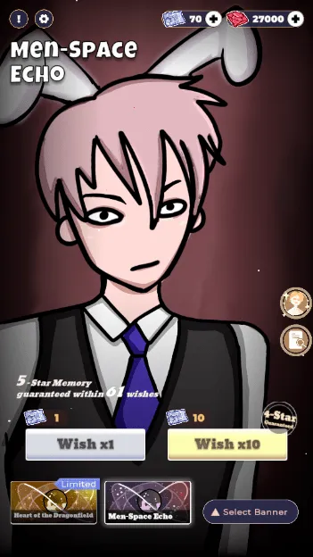 这是一款以轻松搞笑为主题的女性向模拟抽卡游戏。玩法上,玩家扮演探索深空世界的角色,通过抽卡获取卡牌角色与道具。抽卡界面与原作相似,70抽保底五星,有单抽和十连抽选项,还能查询抽卡记录。