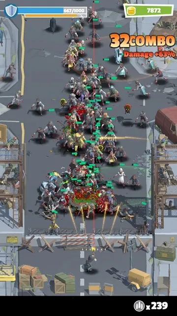 玩法上,操作简单,触摸屏幕就能控制角色移动和射击。玩家需掌握射击技巧,在关卡中抵御大量僵尸入侵。这里有各种武器类型,从火炬枪、机枪到手枪、狙击枪等,不同武器应对不同敌人。而且通过消灭僵尸可赚取硬币,用于升级武器和装备。