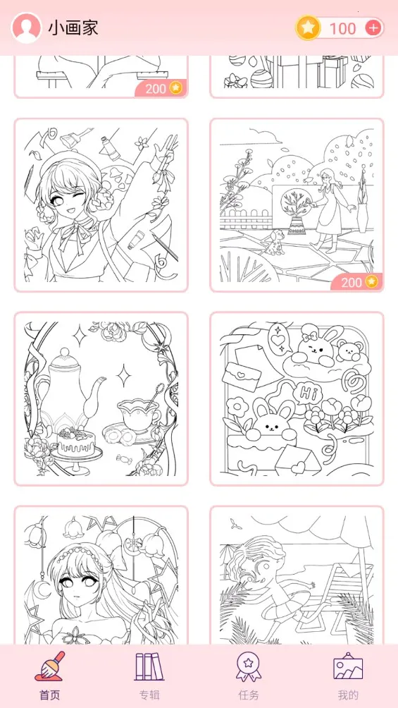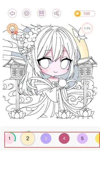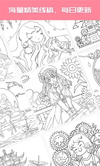 1、海量模板:拥有大量二次元、动漫、古风等数十个分类的人物模板,上百张美图供玩家涂色,每周持续更新,让你总有新图可涂。