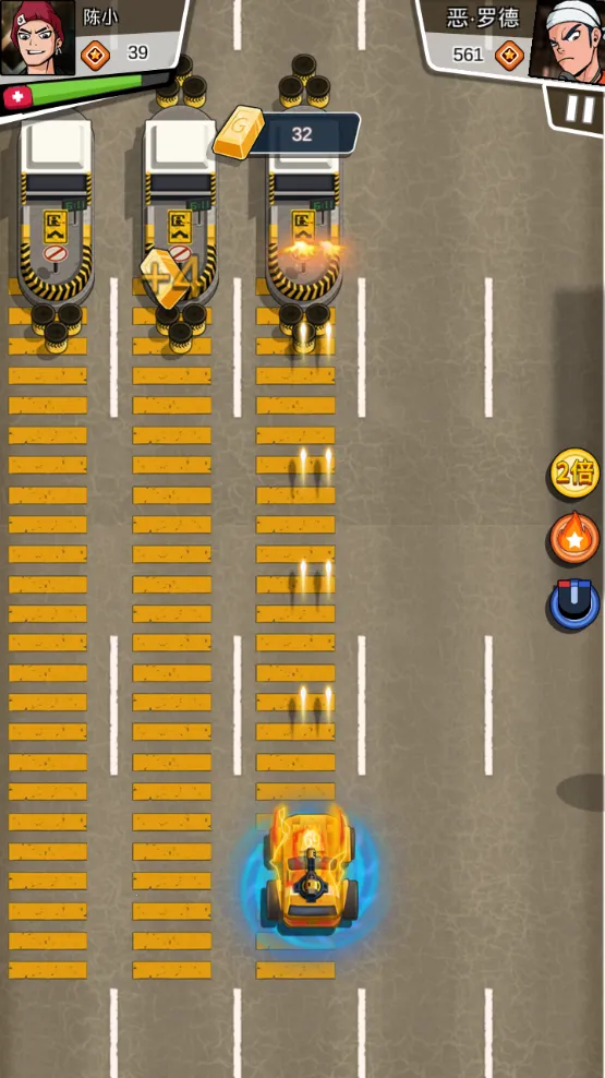 游戏玩法丰富,在赛道上既能驰骋飙车,还有暴走飞行、劫持卡车等特色玩法。操作简单易上手,玩家操控赛车左右移动射击消灭阻挡车辆,收集随机道具增益。