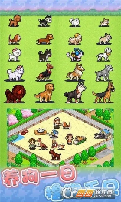 游戏画面是经典的像素风,清新简约,搭配轻松舒缓的背景音乐,让人仿佛置身可爱狗狗的世界。玩家化身乐园管理者,能自由经营,培育狗狗、种植植物,合理布局设施吸引客人。这里狗狗种类丰富,从柴犬到边牧等应有尽有,满足玩家的收集欲。
