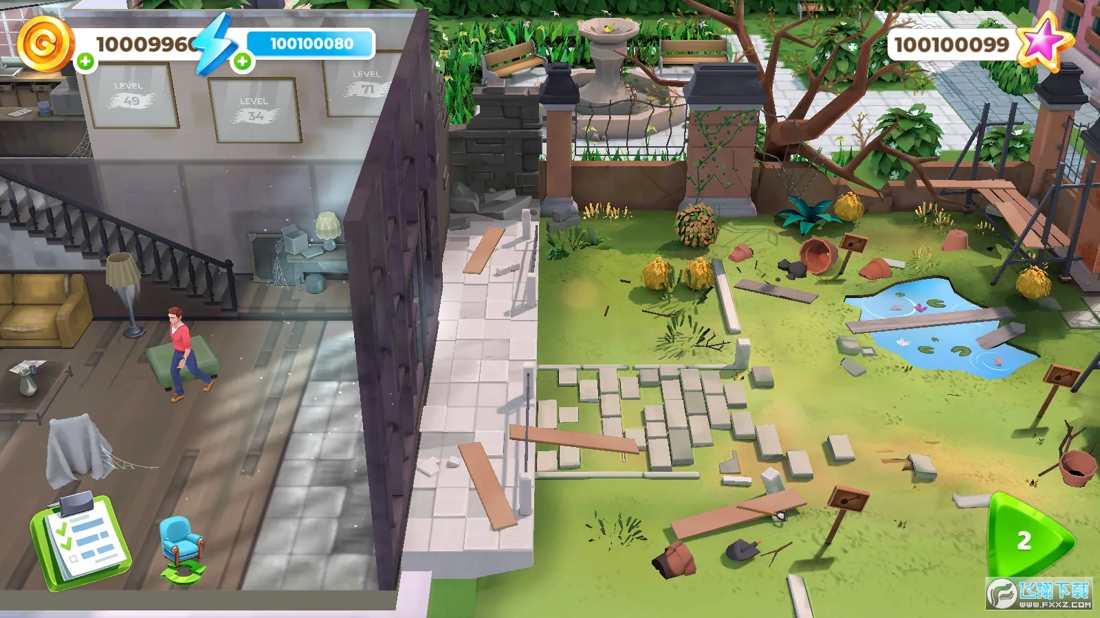 2. 玩家可通过完成涂色关卡收集海量金币,用于兑换家居装饰,将破旧宅邸翻修成精美豪宅。