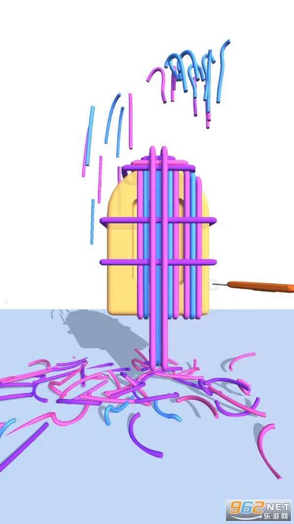 3. 物理反馈爽快:橡皮筋根据自身弹力被切断后,会真实地弹开飞散,视觉效果解压。