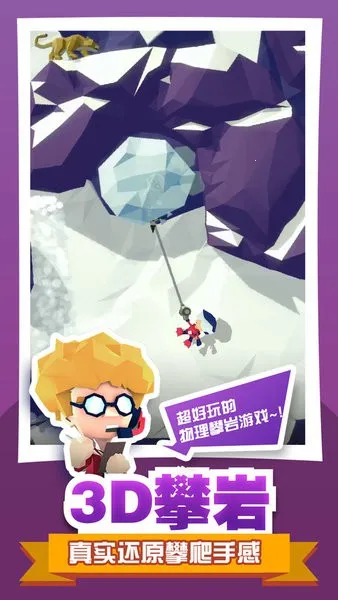 在《绝地大冒险》这款休闲冒险手游里,玩家能体验到独特的冒险乐趣。游戏以皑皑白雪为背景,画面精致,场景细腻,有海量关卡和丰富地图。玩家化身主角在多样地形的雪山用铁钩攀爬,途中营救被困的攀爬爱好者。