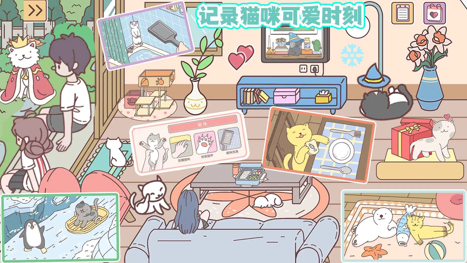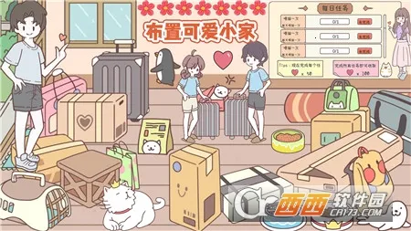 游戏玩法多样,能选购家具装扮温馨小屋,自动推荐放置位置超省心。还能照顾可爱宠物,默认就有一只猫咪,也能买礼盒拥有更多。可以和猫咪贴贴、剪指甲、洗澡。色彩温馨淡雅,操作简单,指尖点击就能和猫咪互动。能解锁家居道具按想法装扮房间,还有很多精彩情节等你体验。在这里,能让你心情变好,享受轻松欢乐时光,快来下载开启你的温馨游戏之旅吧!