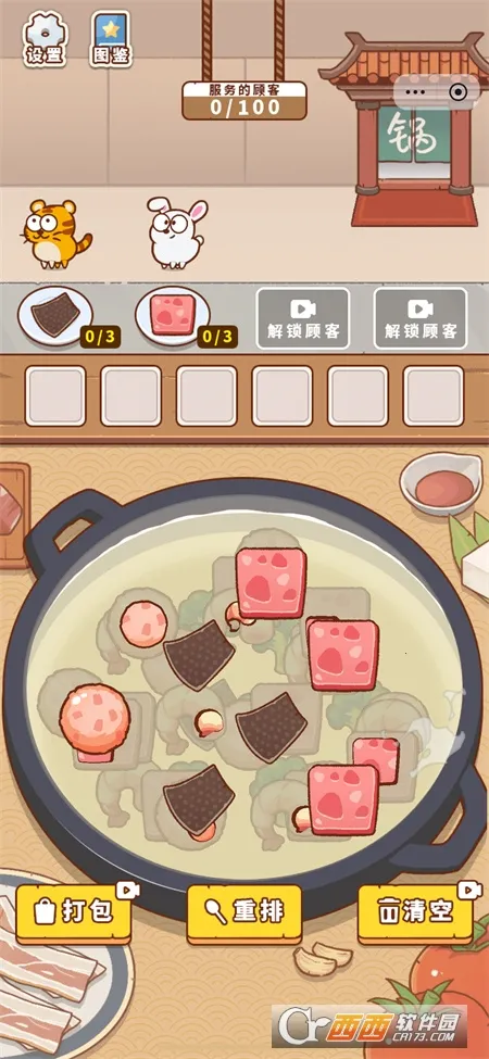 如果你正在寻找一款能带来欢乐和挑战的智力游戏,那么 “智力大挑战超级鲁班锁” 绝对值得一试!它以三消玩法为核心,通过点击相同食材完成消除,帮助小动物顾客享用美食。游戏采用Q萌可爱的卡通画风,色彩明亮活泼,角色与食材设计充满童趣,搭配轻松愉悦的音效,营造出欢乐的游戏氛围。