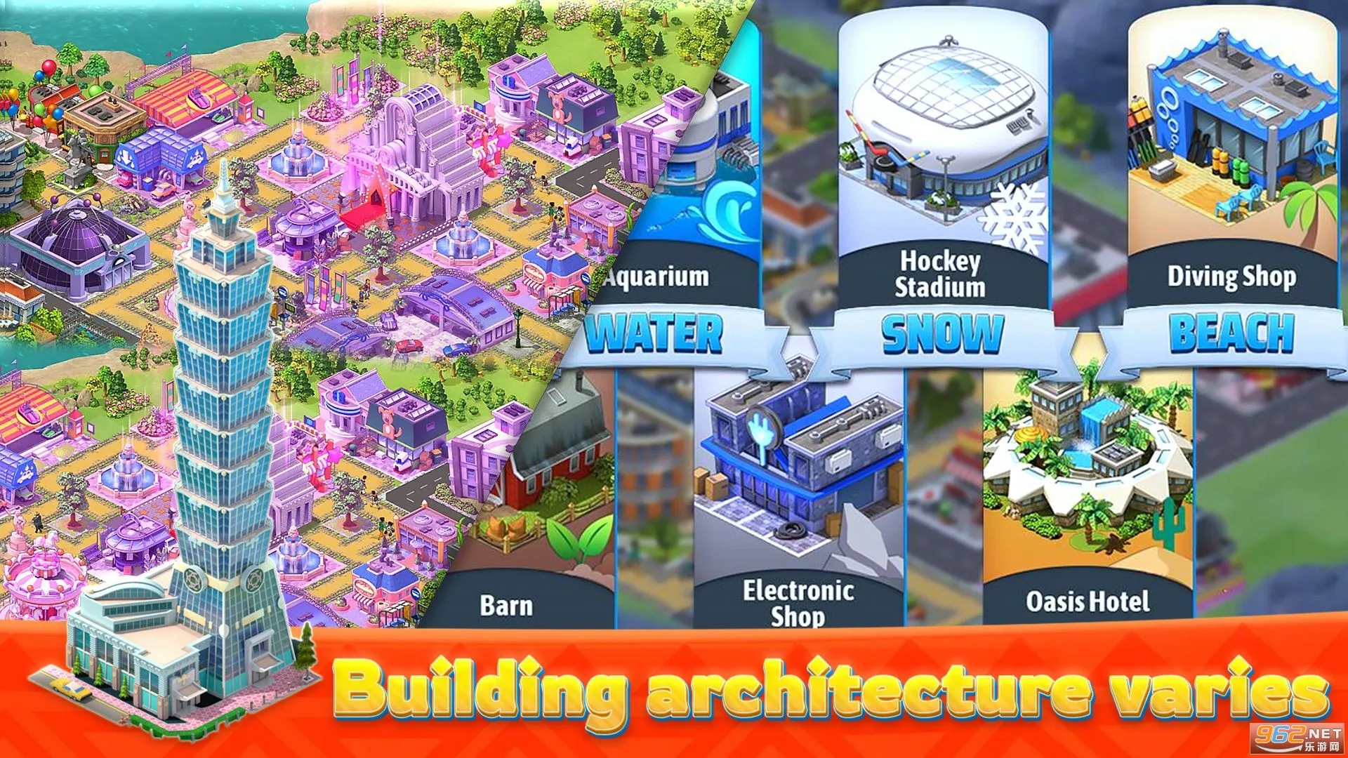 3. 拥有近两百种造型各异的独特建筑供玩家收集与建造,满足玩家的创意和建设欲望,打造心目中理想的都市。