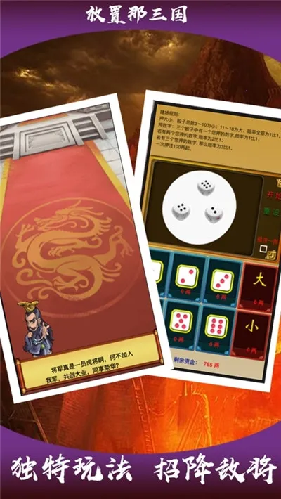 副本设计多样,完成任务能获资源助卡牌成长。游戏以竖屏休闲挂机模式为主,每天稍作经营即可坐收资源,活用兵法策略甚至能以弱胜强,重现经典战役,让玩家感受别样三国乱世风云。