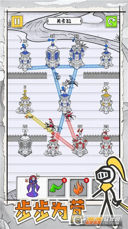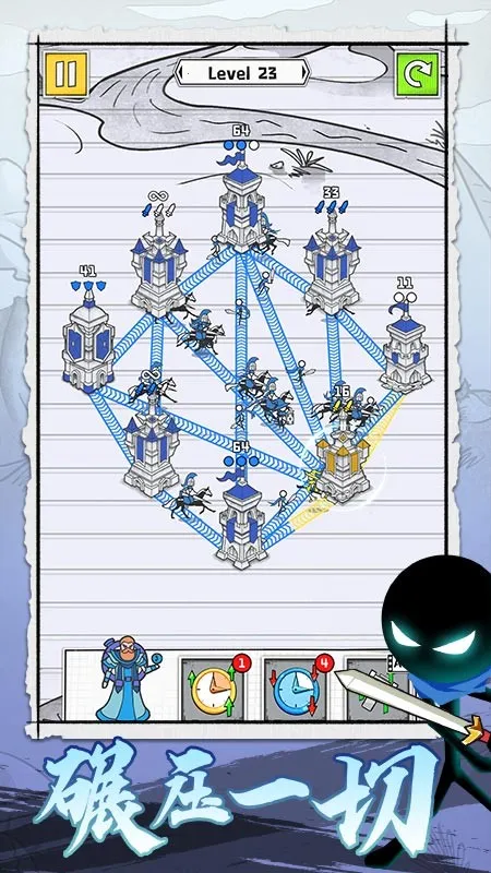 皇城攻防战2026最新版本延续了经典的火柴人形象,战斗体验绝佳。游戏玩法简单易上手,通过拖动城堡连接、滑动断开,操作直观。关卡丰富多样,难度递增,数百关卡让玩家不断进阶。