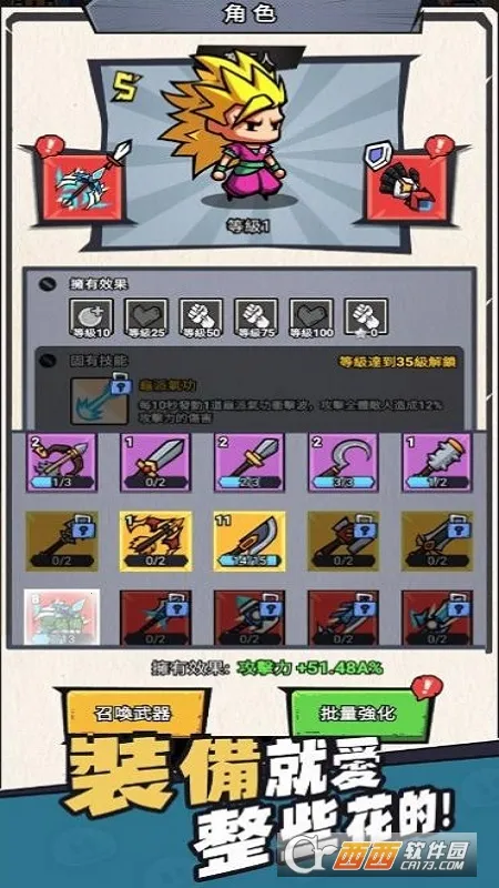 2. 奖励机制诱人:在游戏中不断参与杀敌可获大量宝石,使用宝石能召唤武器技能和天赋完善阵容,助力提升战斗力通过关卡。