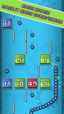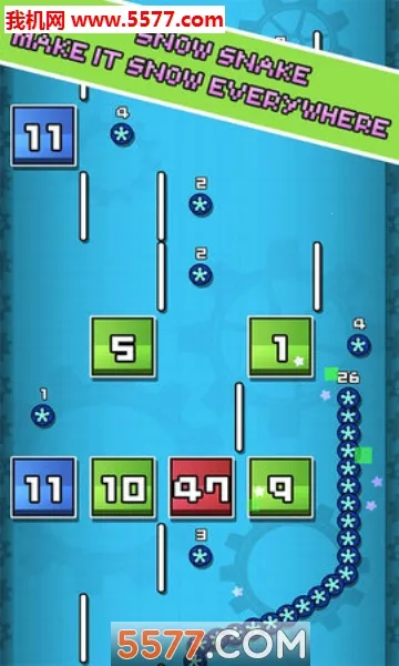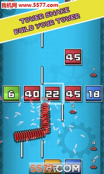 玩法上,玩家要控制贪吃蛇避开障碍物并不断前进。贪吃蛇吃掉带有数字的小球,数字是几就能加几节身体,这样面对砖块时,只要长度够方块所需数值就能撞过去。通过不断视角切换找最佳攻击位置,滑动切换杀手蛇侧面看清障碍物以躲避,还得开发大脑想办法吃更多砖块。操作简单,只需改变方向吃数字提高长度。
