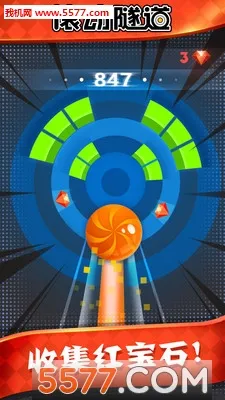 滚动隧道是一款休闲躲避游戏。玩家控制小球穿越重重机关,躲避形形色色的障碍物,收集道具获取特殊能力以更远滚动。