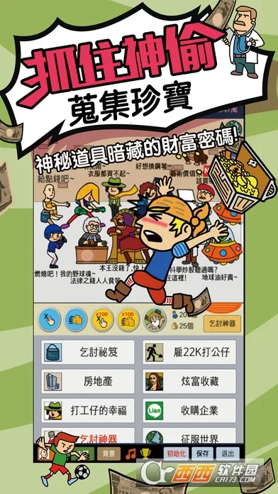 2. 独特模拟体验:玩家化身乞丐,通过点击积累资金,招募打工仔组建军团自动化挂机赚钱,还能购买奢侈资产,投资房地产或收藏字画,体验别样人生。