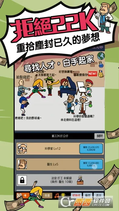 天天不上班是放置类乞丐模拟养成游戏。玩家化身乞丐,点击积累资金,招募打工仔组建军团挂机赚钱,资金暴增后可买奢侈资产。还有丰富爆笑对话,展现人生百态与行业不易,快来体验乞丐成长之路。