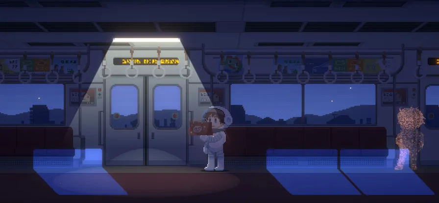 像素手绘画风细腻,暗色调背景与温暖光区对比强烈,如精致绘本,带来沉浸式艺术享受。