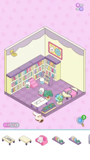 操作简单有趣,是直观的拖拽式设计,新手也能快速上手。通过双指缩放查看细节,长按还能微调与替换。游戏提供多种房型模板,选择心仪房间后,在素材库挑喜欢的贴纸直接拖拽摆放即可。完成后能保存高清截图、生成动态展示视频分享。