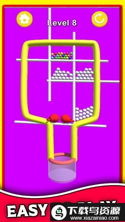 游戏操作易上手,收集够规定彩球就能解锁后续关卡。玩法上,画面精美、关卡创新,基于物理引擎,操作反馈到位,要选对步骤和角度送小球入管道。