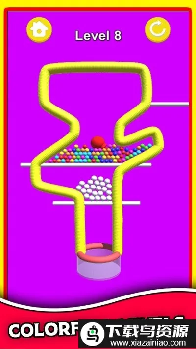 拉针球球是一款休闲益智游戏。玩家要拉动关卡中的针杆,引导彩色小球落入目标篮子,同时谨防白色小球混入,否则挑战失败。核心目标是收集彩球,关键在于按顺序拔销钉。