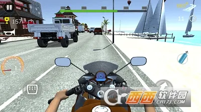游戏中,有多种不同型号的摩托车供玩家自由挑选,每款都有独特性能与外观。玩法上,要在道路上安全超越前方卡车,加速冲刺时还得灵活闪避其他车辆,十分考验操控技巧。