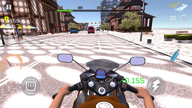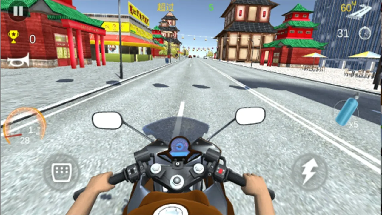 这是一款令人热血沸腾的摩托车竞速游戏。它以第一人称视角构建画面,让玩家仿若身临其境。