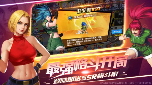 1. 正版授权:游戏获得SNK正版授权,经典IP角色高度还原,像八神庵、草薙京等,带你重温街机情怀。