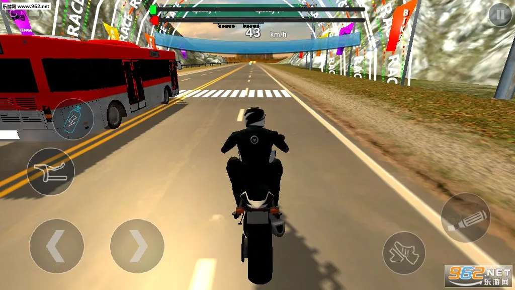 这款游戏主打摩托与巴士的激烈追逐竞速。其功能原理在于玩家操控摩托与巴士在公路上比拼,通过合理操作和把握时机实现超车。玩法机制上,玩家要熟悉车辆,维持发动机状态,留意车流变化攻克关卡。