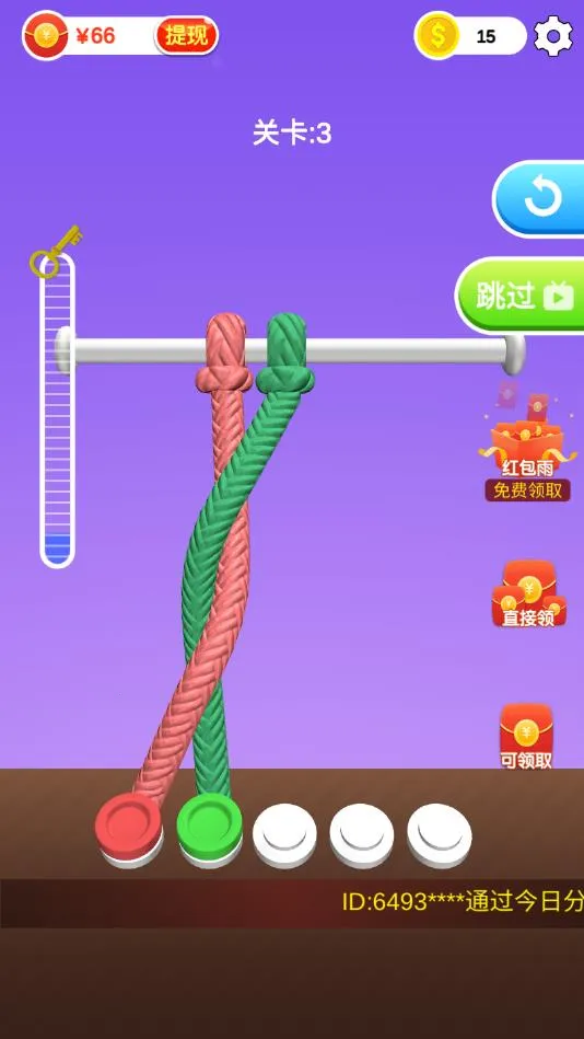 《解绳能手2026》是一款充满趣味的益智解谜游戏。其初始关卡较为简单,随着游戏进程推进,绳子数量增多,缠绕方式愈发复杂,极其考验玩家的观察力与思考能力。