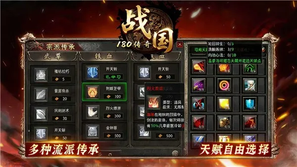 而且,强化装备成功率能靠幸运石提升,商城还有装备助你升级。人物可技能觉醒,学更多技能装备。游戏刷怪装备爆率高,花时间就能装备毕业。游戏重现战国七雄势力分布,让你任选一方征伐纵横。能招募四方英豪,还有神兵利器助战。精彩活动再现经典战役,战术为王,每场战斗都是智慧较量。快来开启你的战国传奇之旅吧!