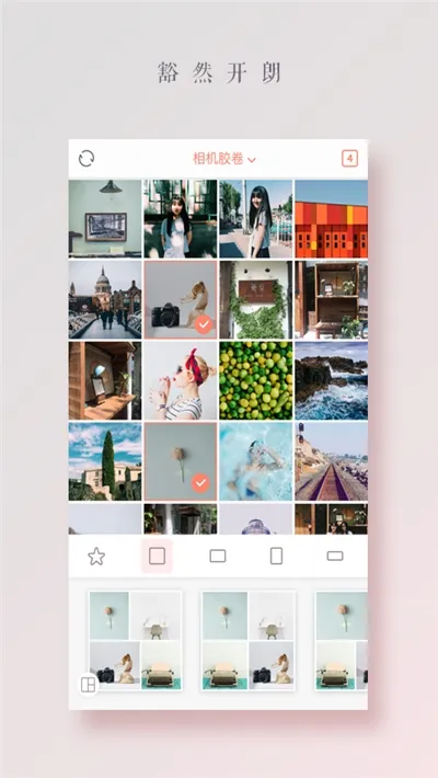 拼图酱是Camera360推出的治愈系拼接海报修图软件,能自动生成并切换模板,自动识别照片人物保持构图完美,还有创意磁贴和丰富调整工具,支持一键分享作品到社交平台。