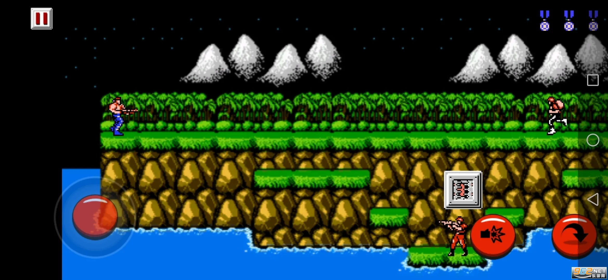 超级魂斗罗无敌版是FC红白机同名游戏移植的射击闯关手游,支持1 - 2人。有经典场景、可选角色,画面精细,子弹多样。操作简单易上手,还能调30条命持续复活,带你重温童年冒险乐趣。