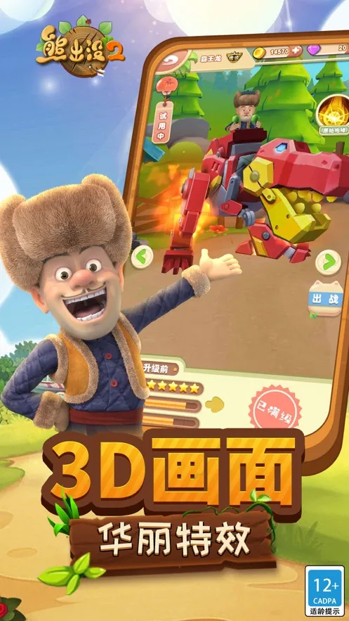 游戏角色丰富,上线可自由选择,像熊大、熊二、光头强等经典角色完美复刻,形象与性格鲜明。场景贴合动画设定,有森林、城市、海洋等,还融入经典剧情与搞怪对白,新增剧情对话强化角色互动。
