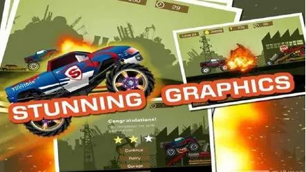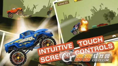 游戏画面精致,物理特效逼真。50条精心设计的赛道,地形多样,障碍重重,如石头、滚木、油桶、报废车辆、僵尸等。玩家需借助卡车庞大身躯突破障碍,穿越险峻地形。