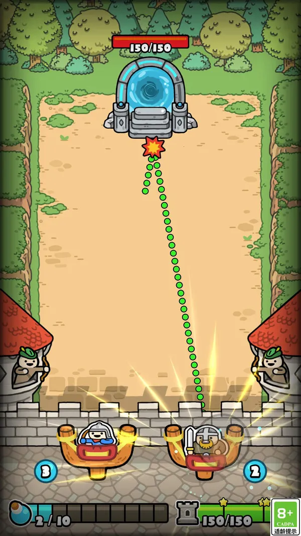1、点击左右两侧的基地,滑动屏幕控制瞄准方向,松开手指即可投放士兵。