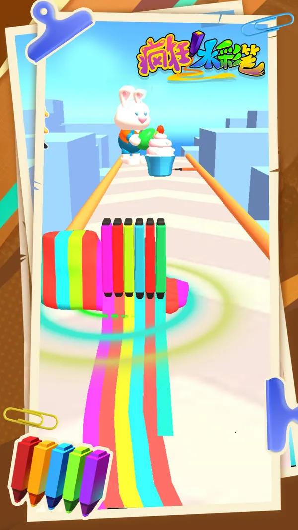 《疯狂水彩笔》是一款休闲跑酷游戏。玩家操控水彩笔在场景中前进,要避开障碍并收集同类彩笔。收集越多,就能为公主裙摆涂抹更丰富色彩,赢得更高积分。