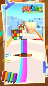 在玩法上,玩家要控制水彩笔沿曲折跑道前行,小心道路空缺或变窄区域。游戏过程考验玩家控制力,操作技巧实用,灵活调整策略才能通关。总之,这是一款极易上瘾、充满趣味的跑酷游戏。